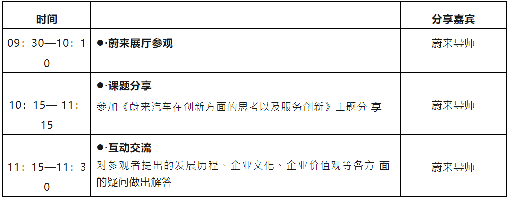 此外,我们还将组织主题分享环节,邀请蔚来汽车的专家为学生们讲解智能电动汽车的发展趋势、换电技术的突破以及自动驾驶技术的应用等内容。在这个环节中,学生们不仅能够拓宽视野,还能与专家进行面对面的交流,提出自己的疑问和想法。